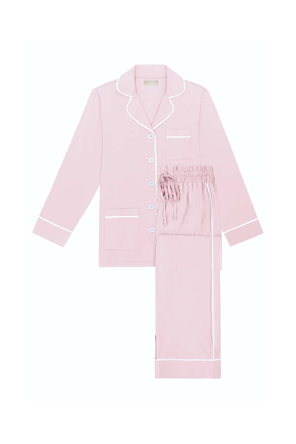 Luxe Stretch Cotton Pajama Set in Pink Peony