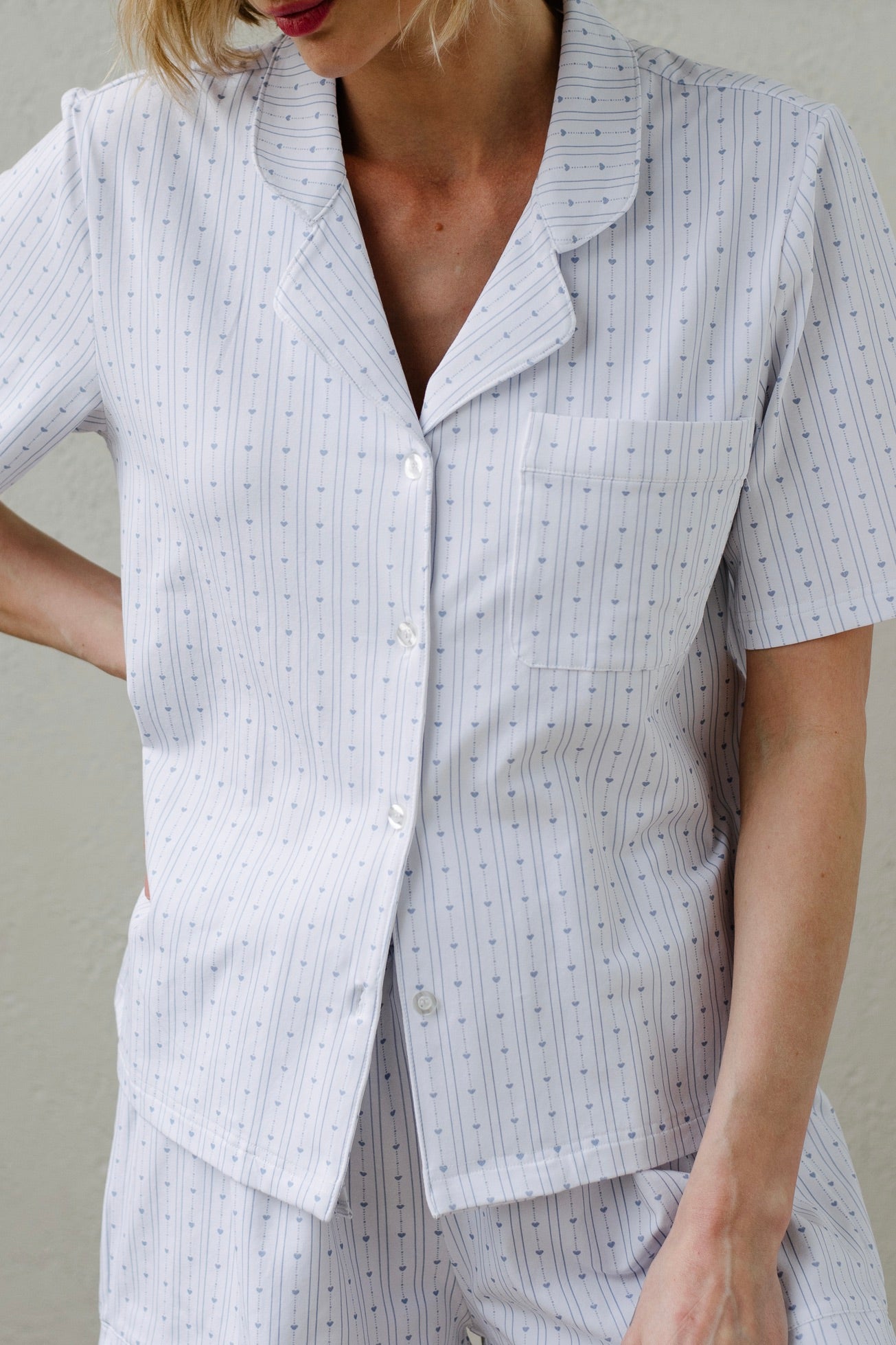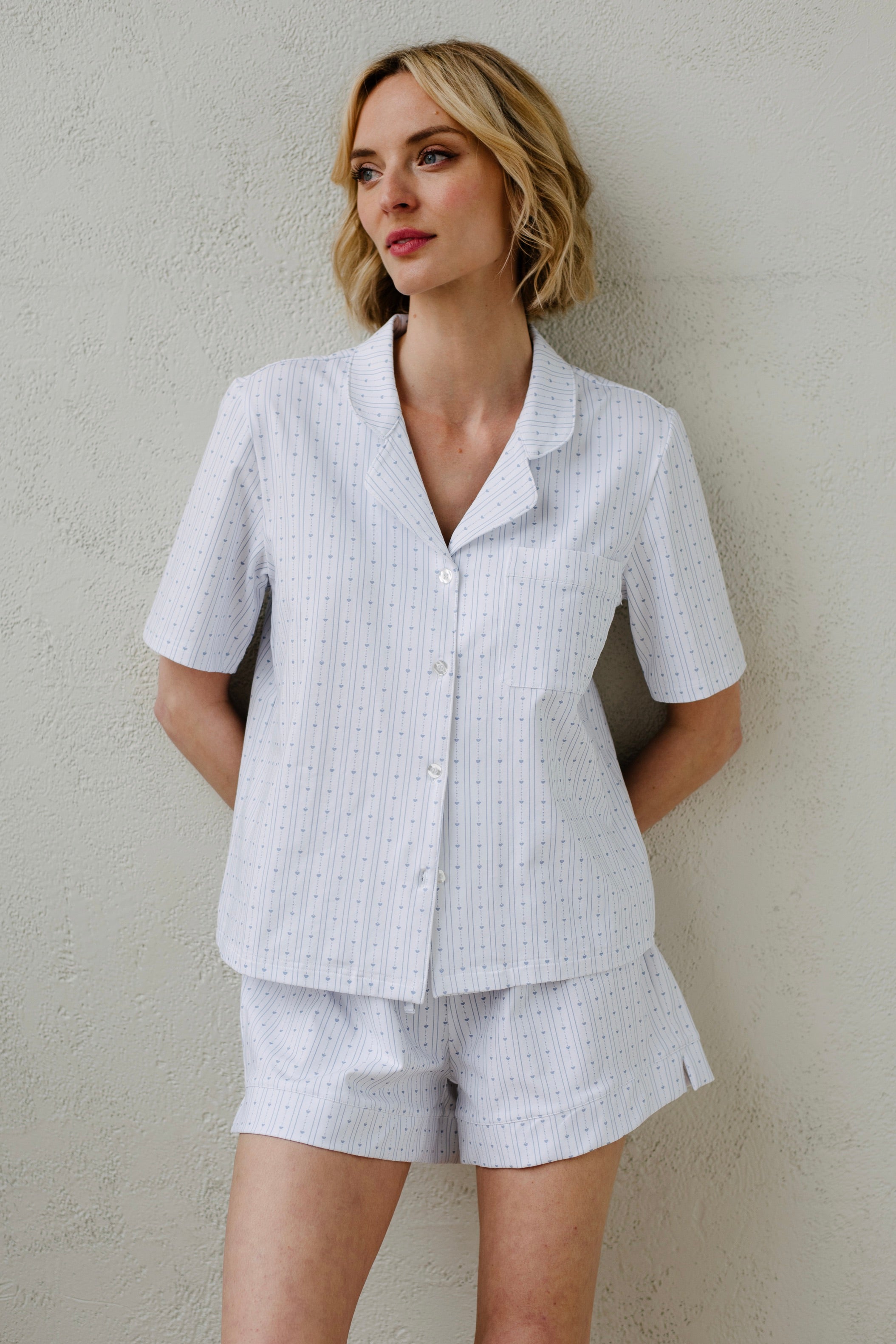 noon by KIP | Stretch Cotton Short Pajama Set in Heart Stripe