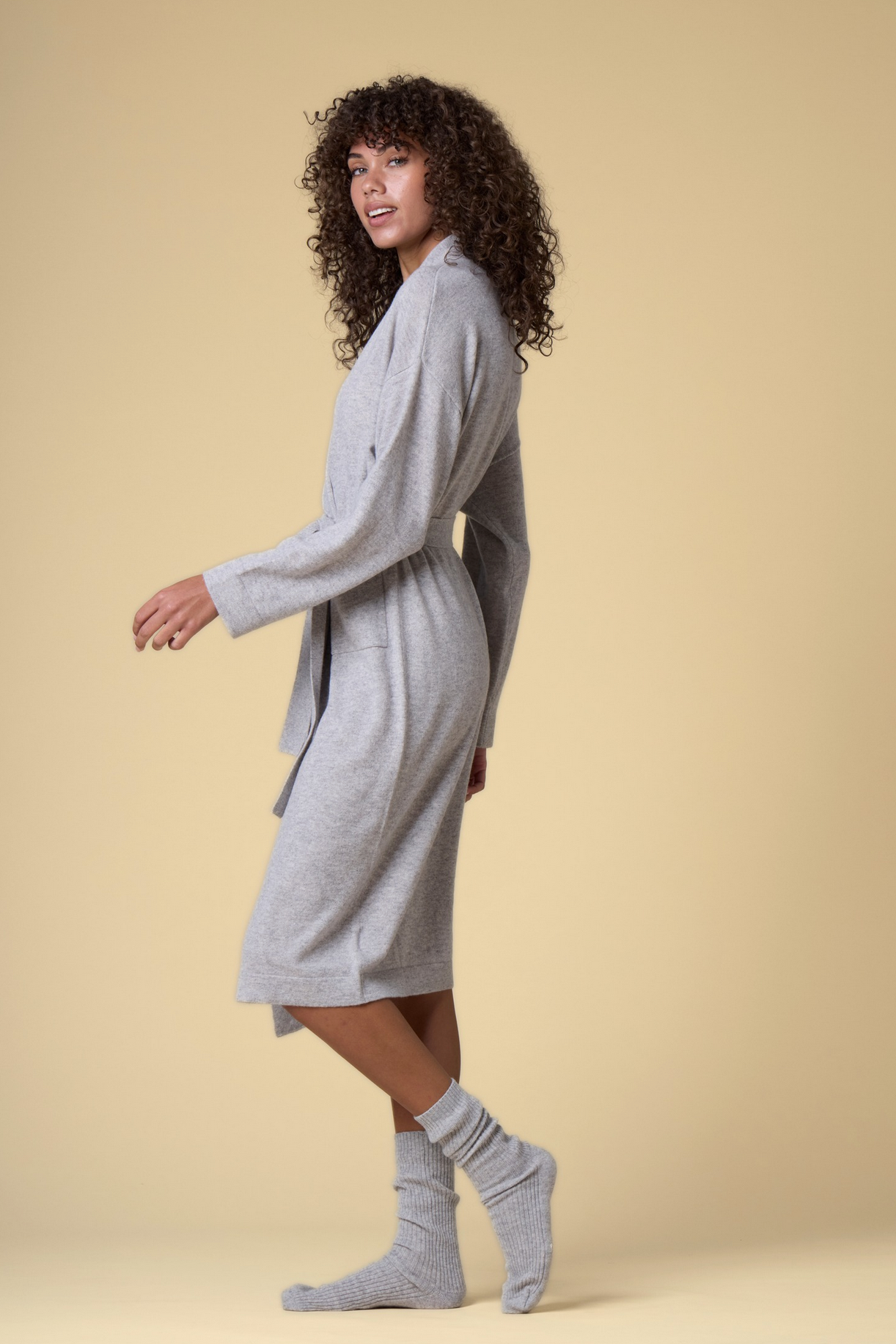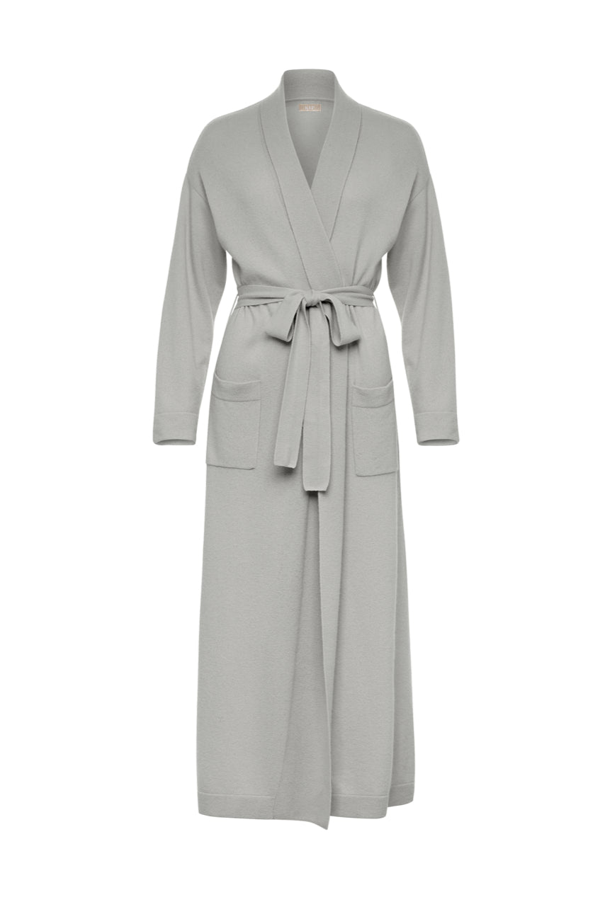 Pure Cashmere Long Robe in Dove Grey