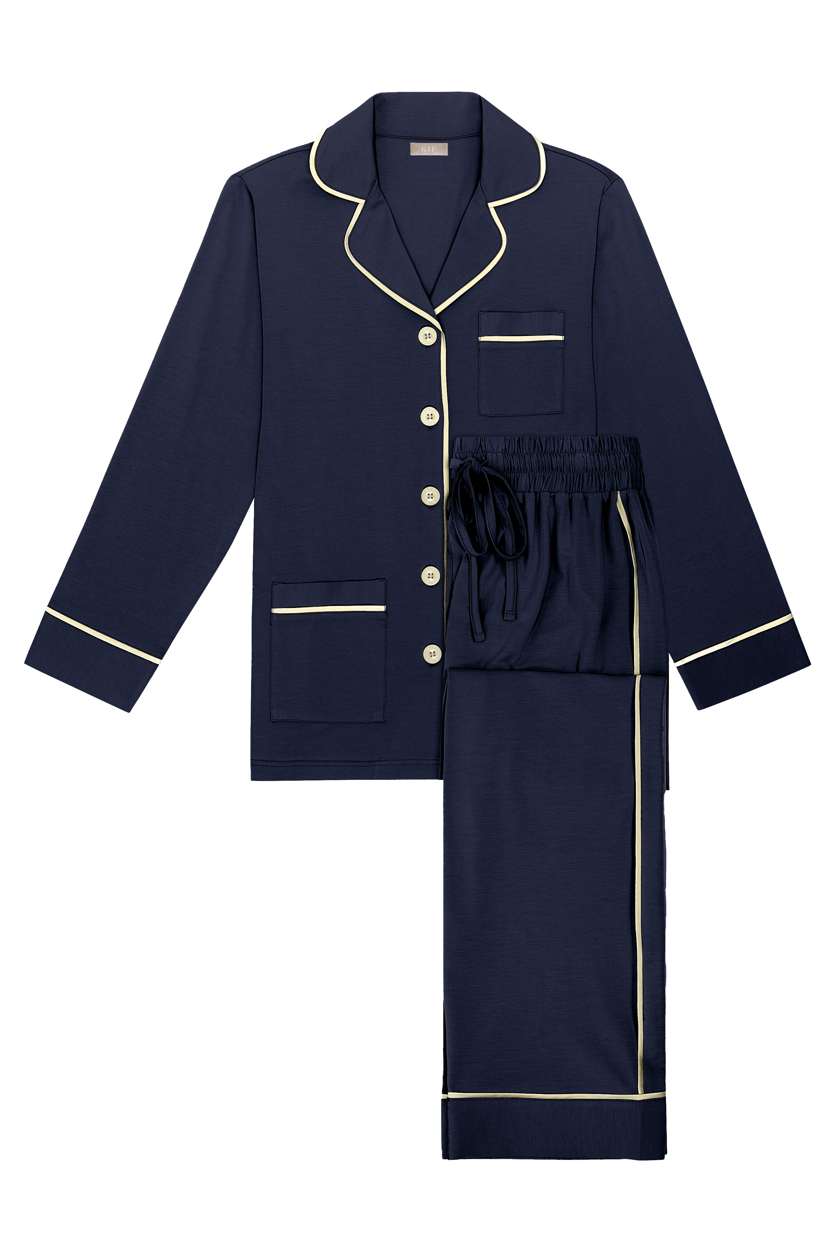 Men's Luxe Stretch Cotton Pajama Set in Midnight Blue