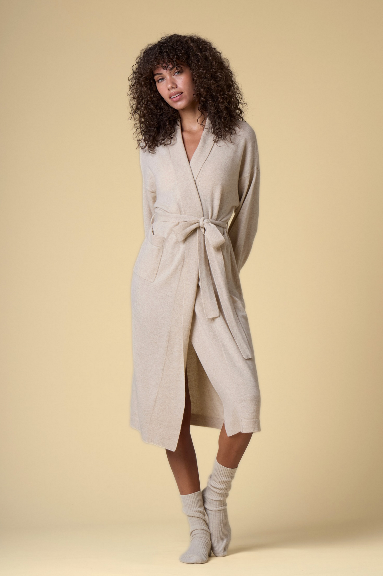 Pure Cashmere Long Robe in Champagne