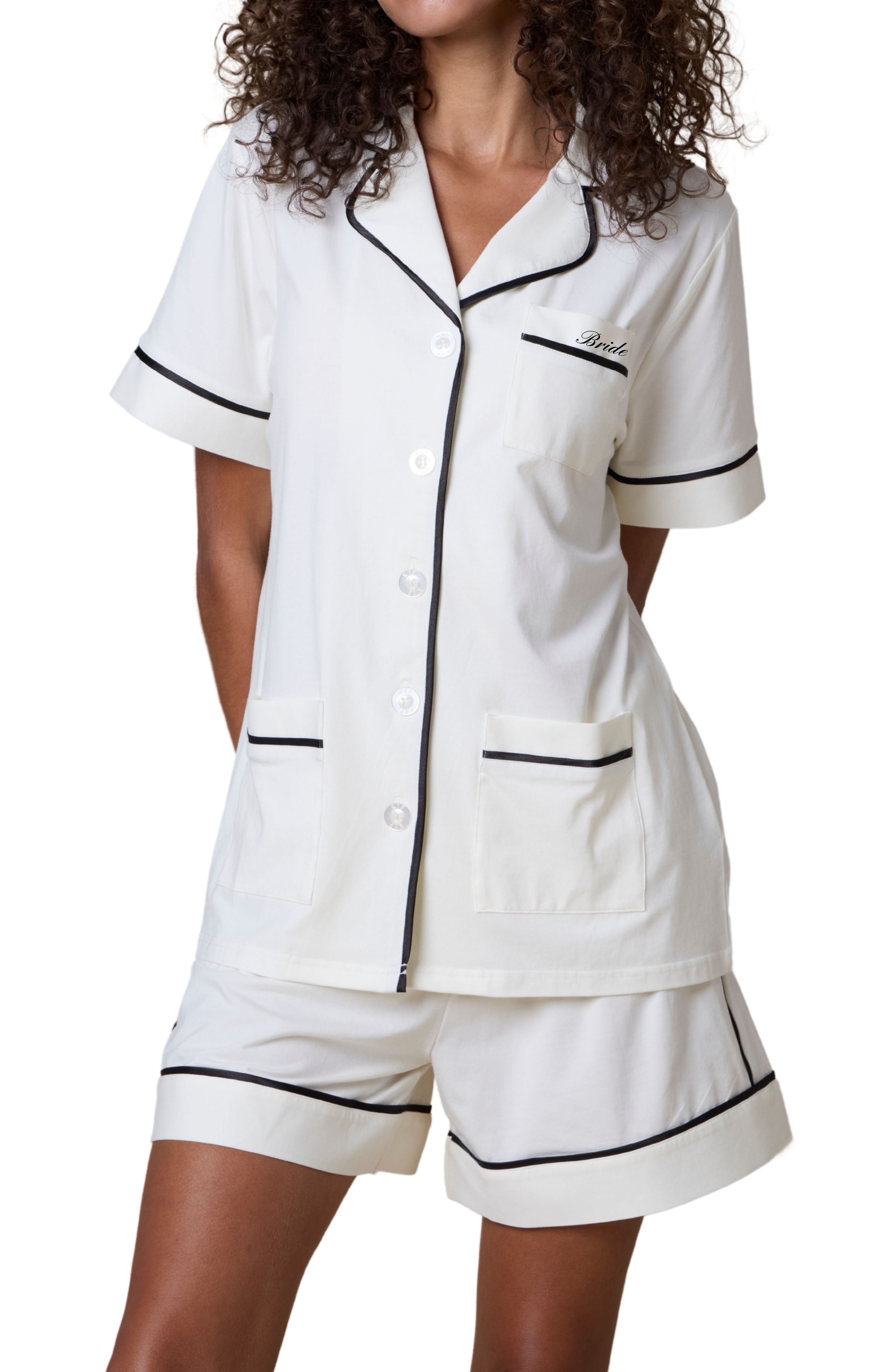 Bride Luxe Stretch Cotton Short Set - Pearl