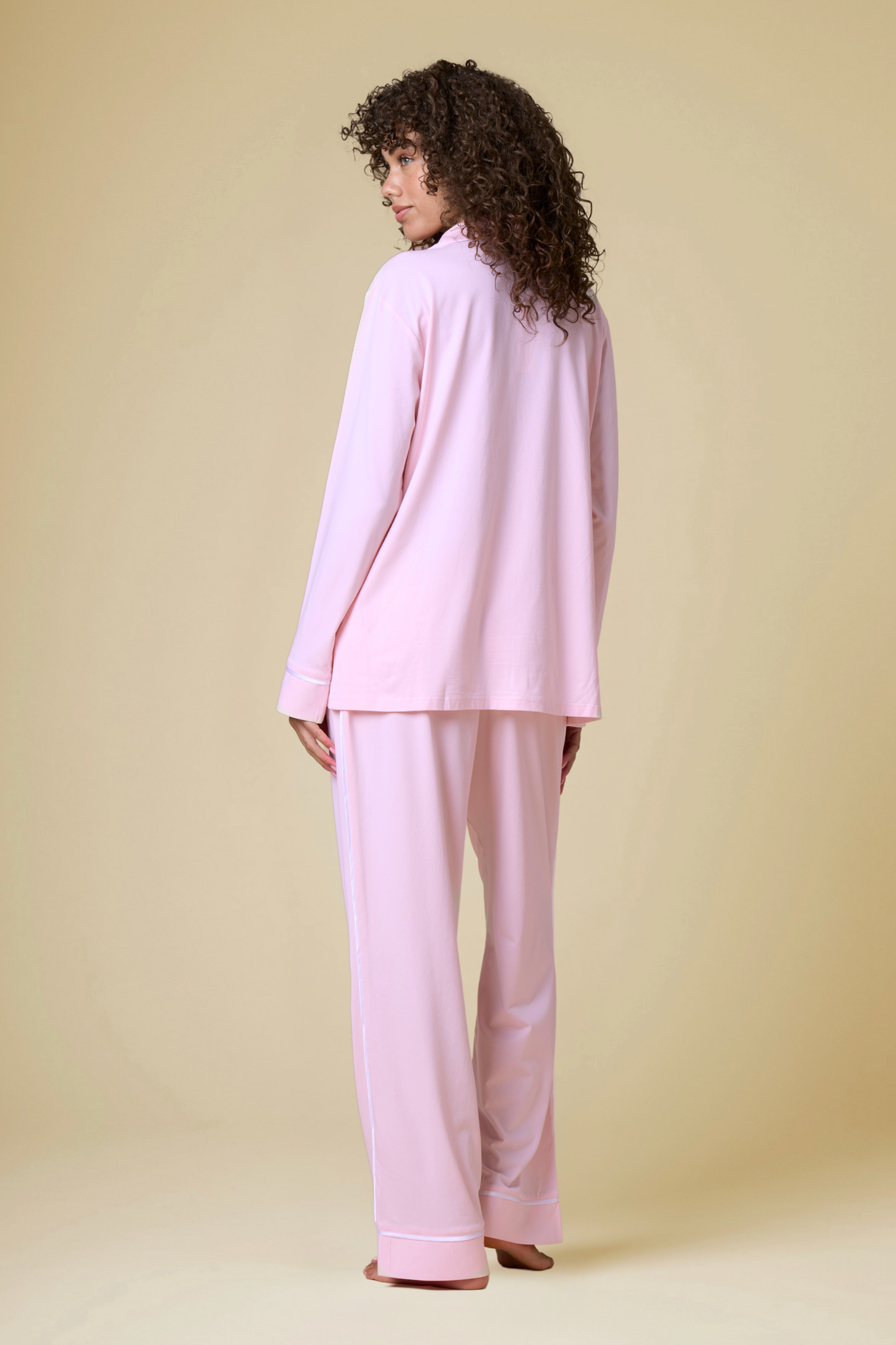 Luxe Stretch Cotton Pajama Set in Pink Peony