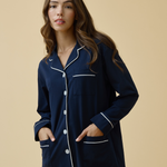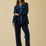 Luxe Stretch Cotton Pajama Set in Midnight Blue