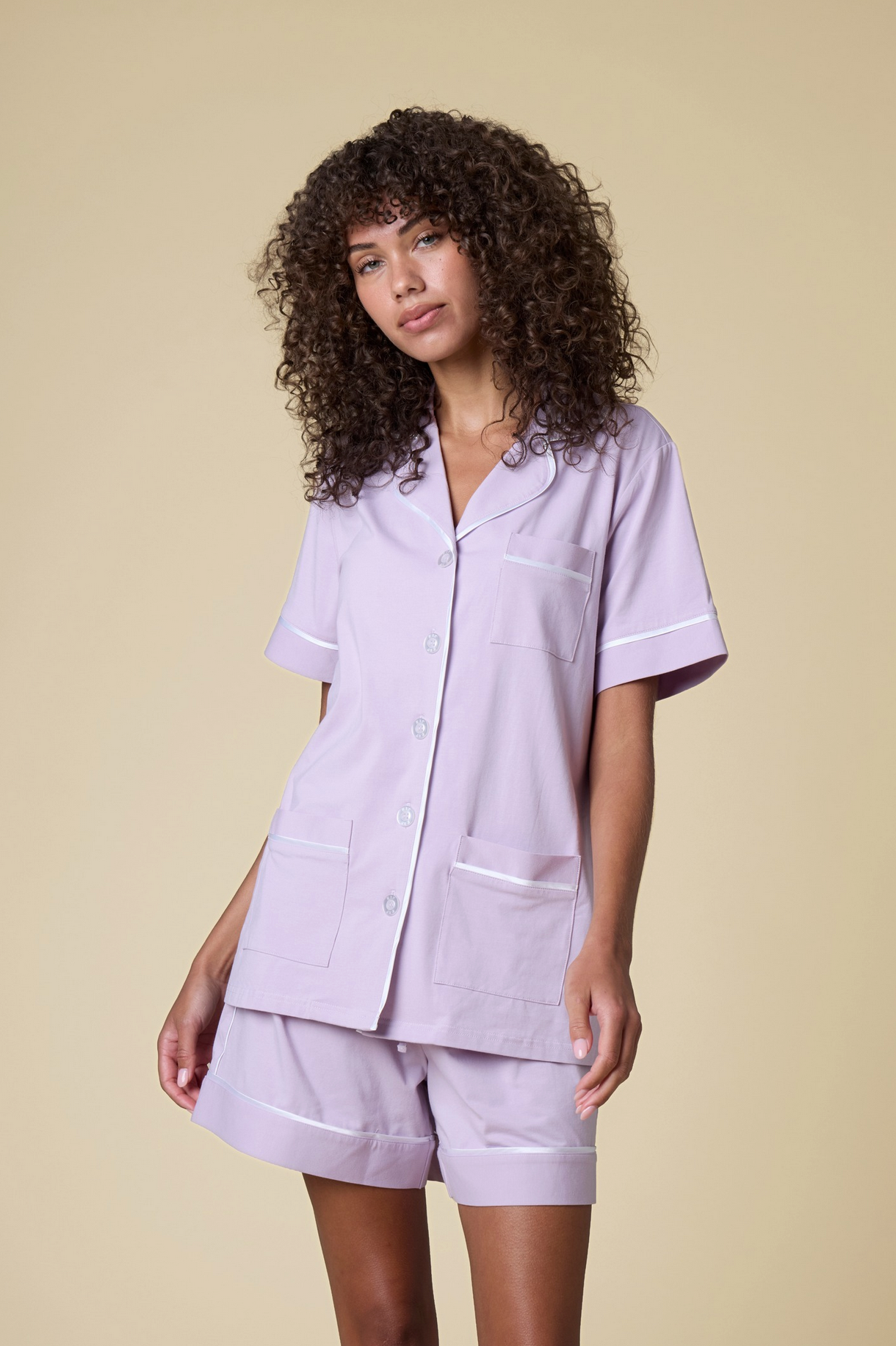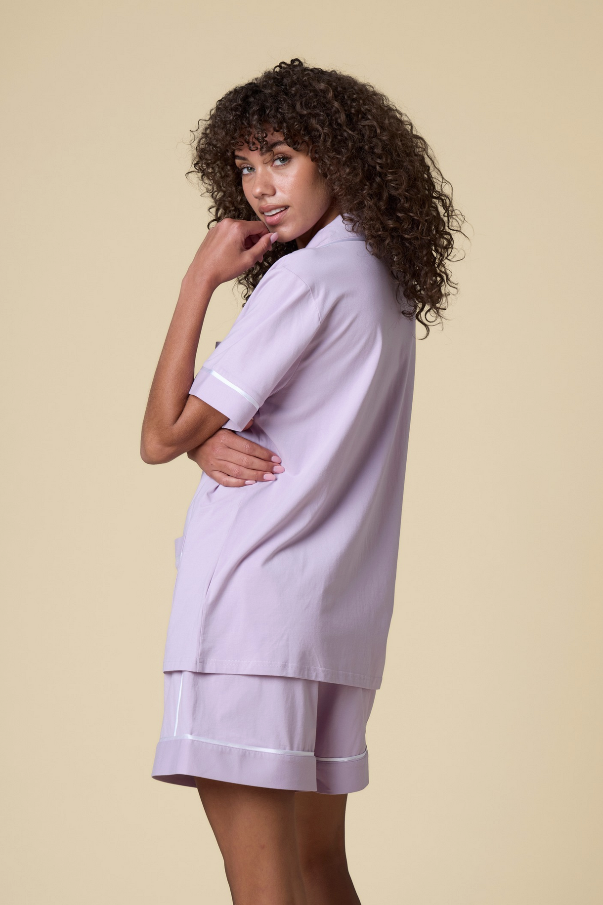 Luxe Stretch Cotton Short Set in Lavender