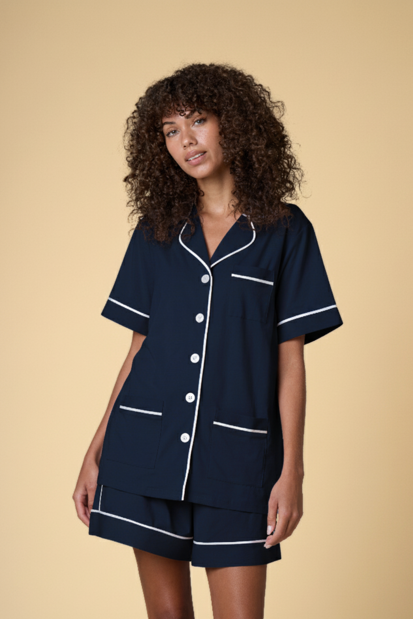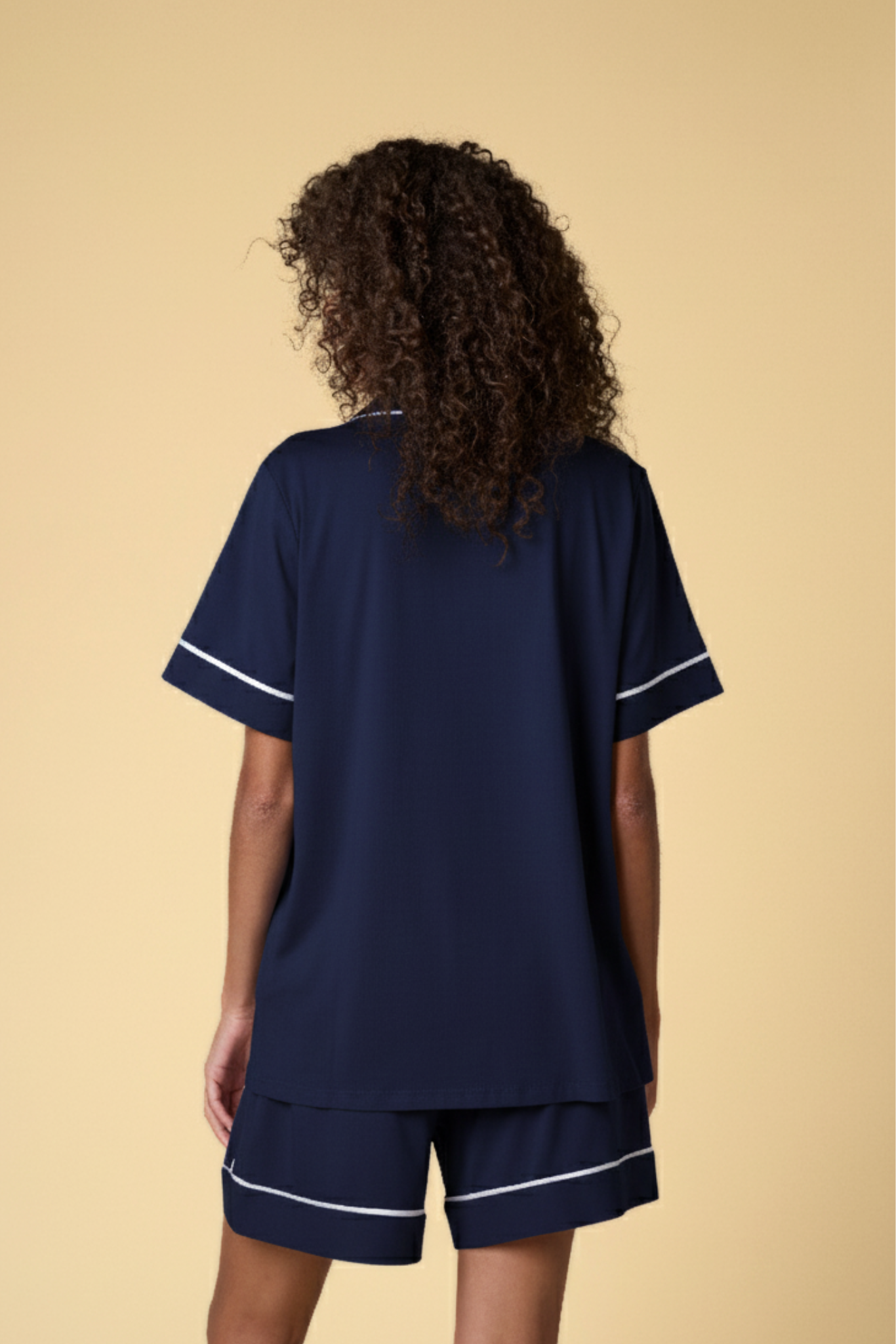 Luxe Stretch Cotton Short Set in Midnight Blue