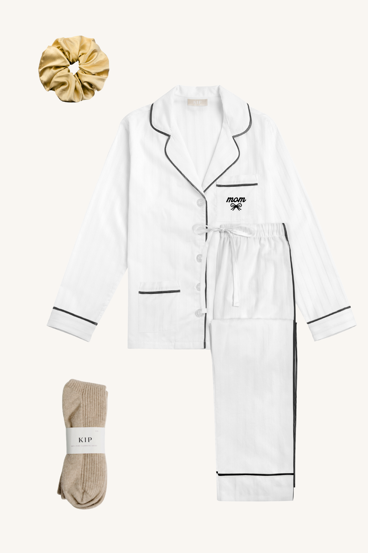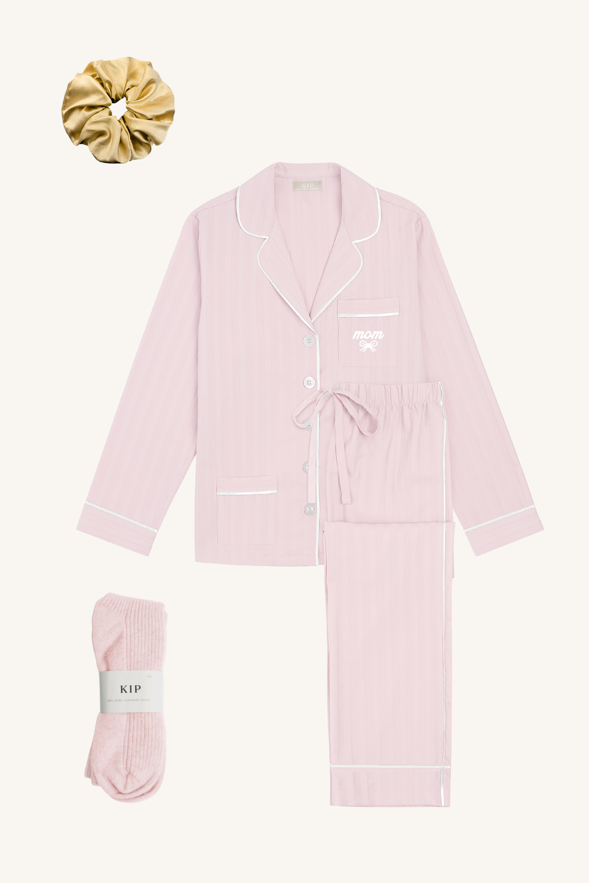 Treat mom to the full self-care experience, featuring the Mom personalized pajama set and our signature sleep accessories. This set comes ready to gift in our keepsake box.